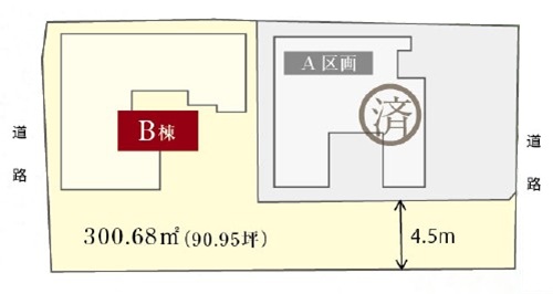 物件所在地:知多市大草字中道筋地内 B棟 最寄り駅:名鉄常滑線「新舞子」駅 徒歩約11分 土地面積:300.68㎡ 坪 建物延面積:81.16㎡ 坪