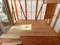 内部の桧の床を張っています。