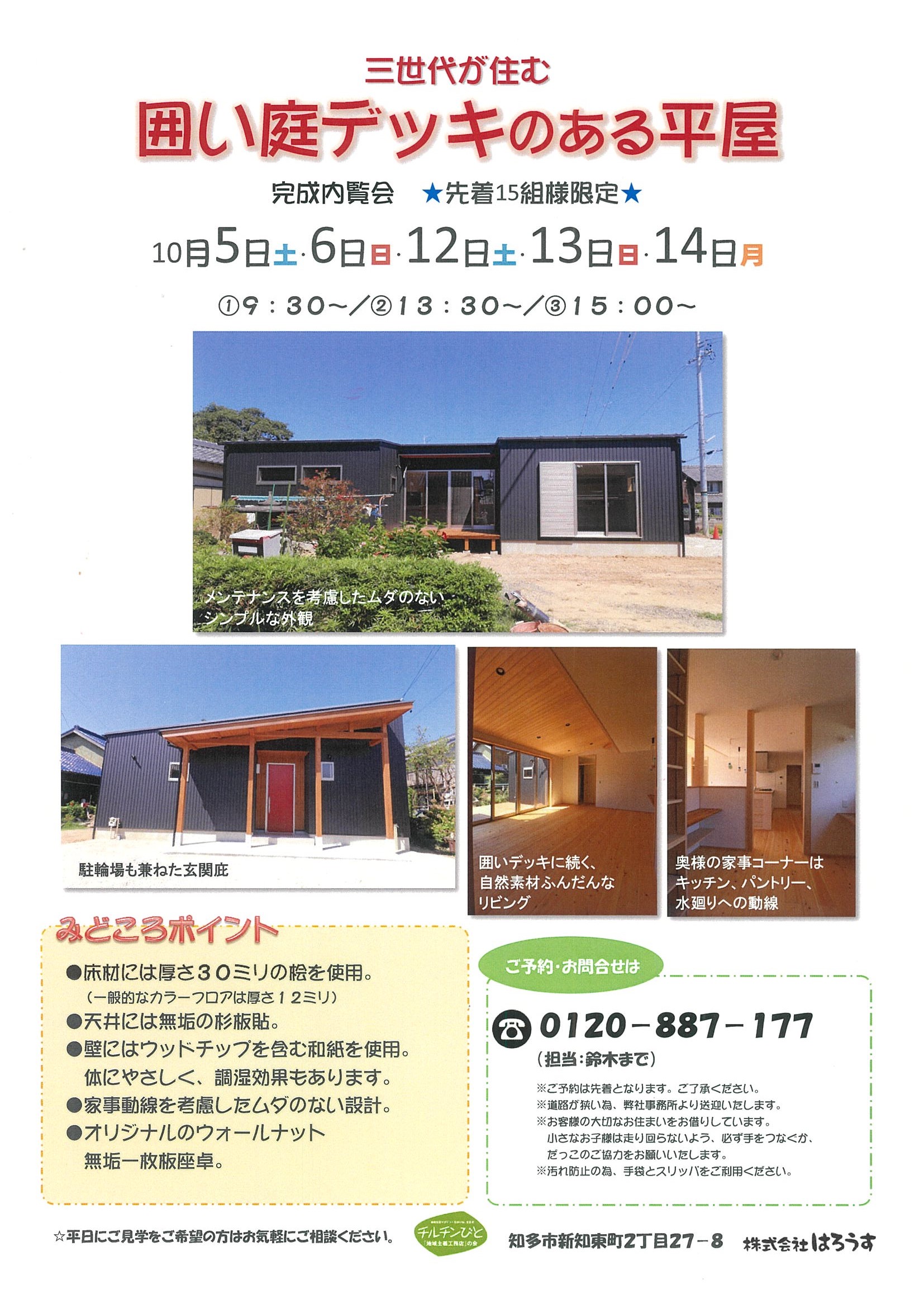 三世代が住む"囲い庭デッキのある平屋"完成内覧会