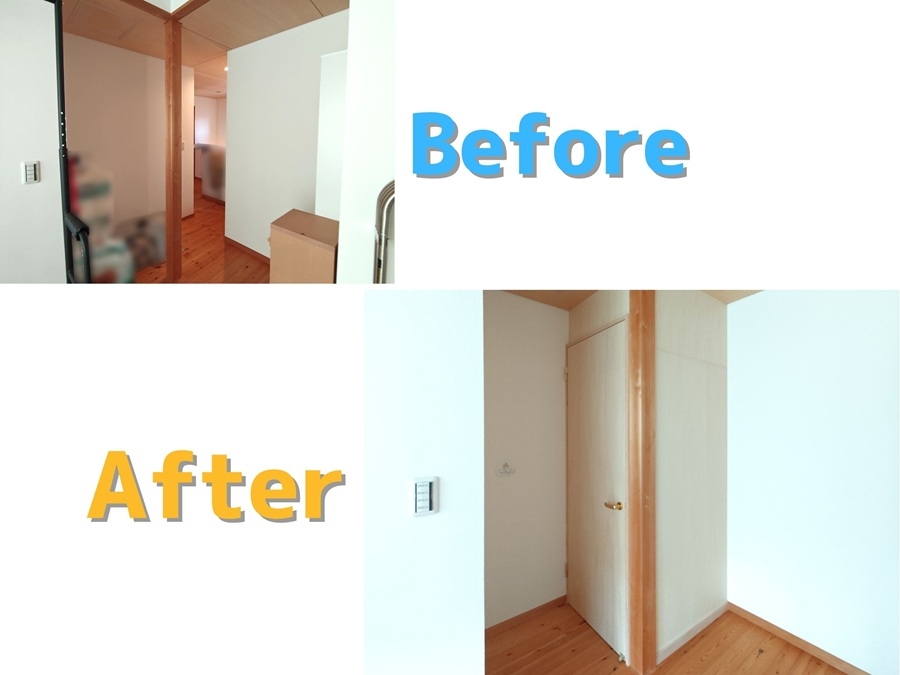 築8年のオーナー様宅。 お子様の成長に合わせて、フリースペースをお子様室に間仕切る工事を おこないました。(壁の造作、建具工事)