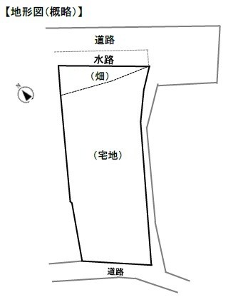 敷地内に電柱有り。南東側道路は法定外道路です。